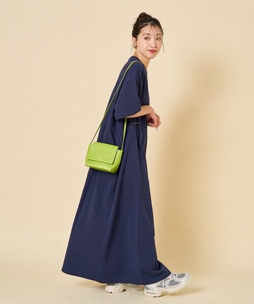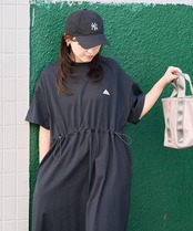 キーワード:ワンピース ロゴ ロング 台形 半袖 無地 WEB限定 アウトドア おうち リラックス スポーティー 春 大人カジュアル 定番 旅行