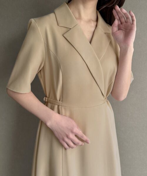 商品名:サイドベルト半袖テーラードフレアワンピース