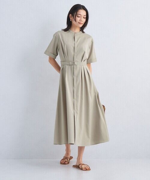 ワンピース ベルト フレア ショートスリーブ ワンピース -マシンウォッシャブル-/90710300