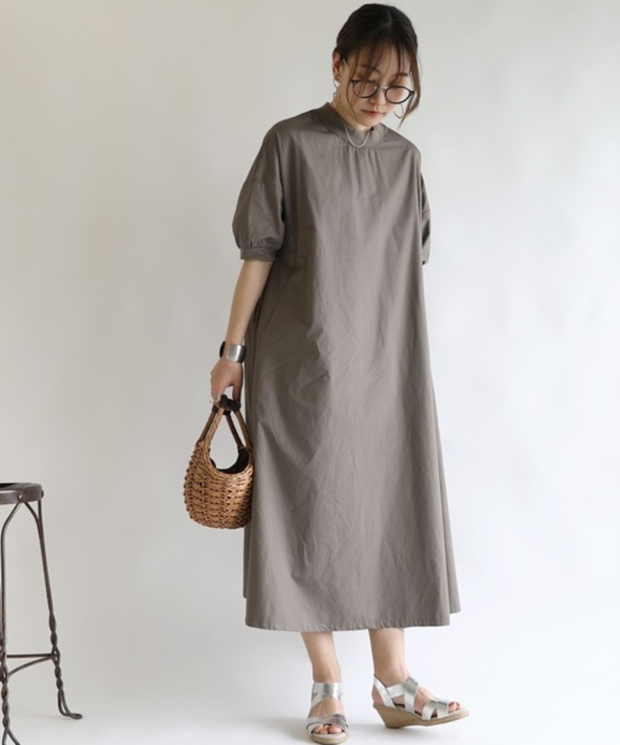 キーワード:ワンピース フレア ロング 半袖 無地