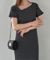 キーワード:ワンピース ボーダー ロング 半袖 無地