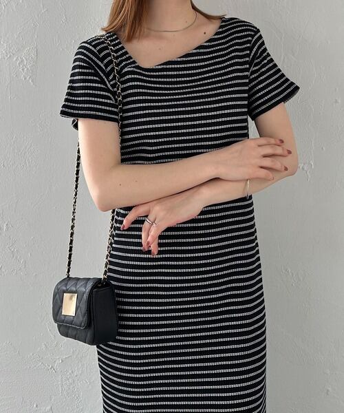 ワンピース 「全骨格細見え」アシメネックハーフスリーブリブワンピース/89823278