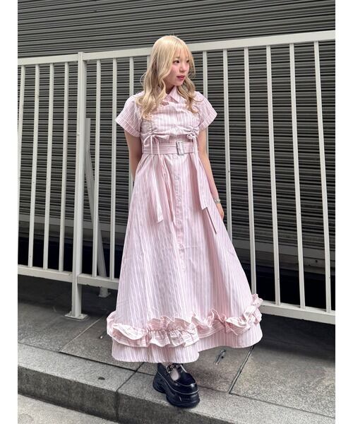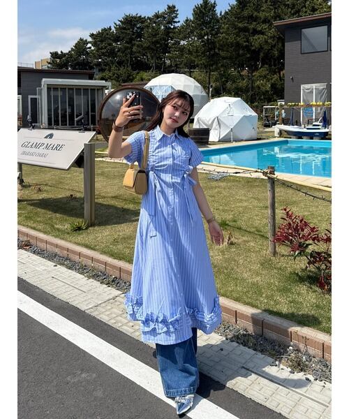 キーワード:ワンピース ストライプ チェック フリル フレア リボン ロング 半袖 ガーリー デート フェミニン 夏 花火大会 大人カジュアル 旅行