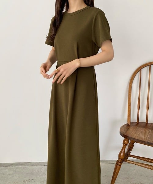 キーワード:ワンピース フレア ロング 半袖 無地