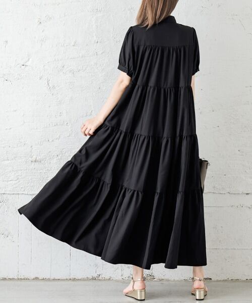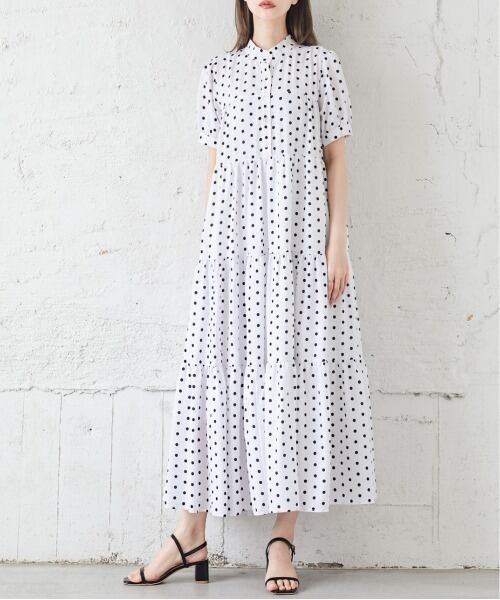 キーワード:ワンピース ティアード ドット ミモレ丈 半袖 無地 オフィスカジュアル キレイめ デート 夏 春 旅行