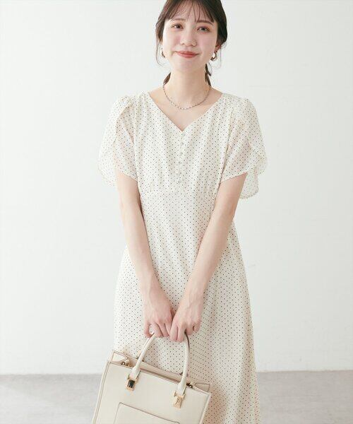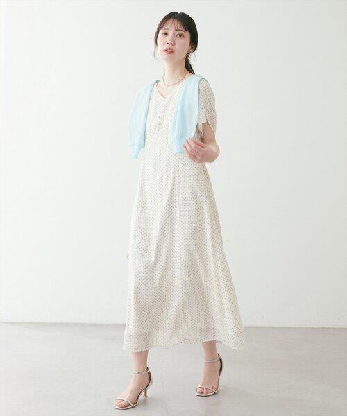 キーワード:ワンピース ドット ミモレ丈 花柄 半袖